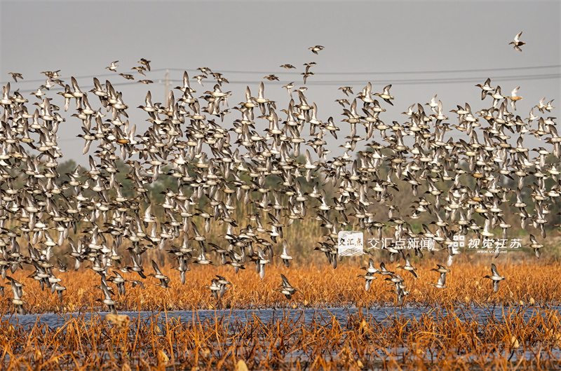 (特约摄影 赵海洋 杨桂宏 7:56摄 9:20上线)12月3日,一群绿翅鸭在兴化市千垛镇刘沟村湿地栖息、飞翔。据了解,绿翅鸭是国家“三有”保护动物,这批“过冬客”预计有1000只左右。