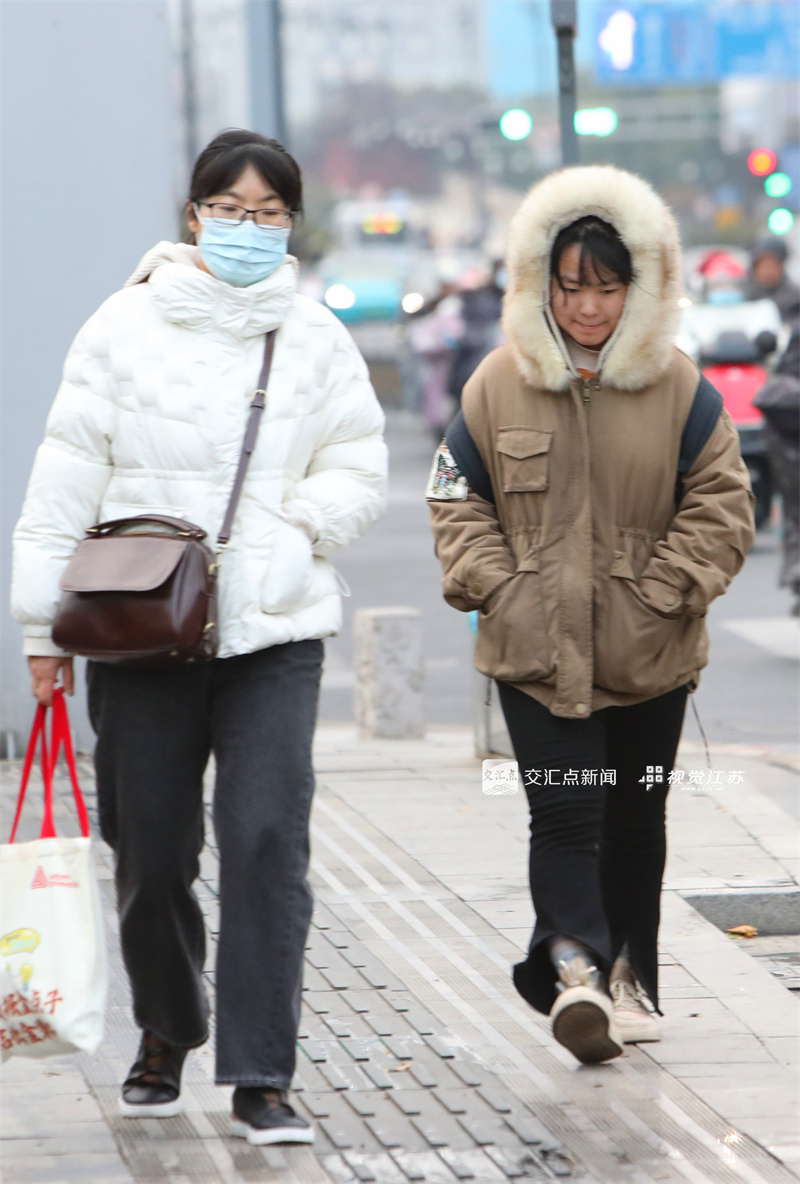(特约摄影 王建中 7:57摄 9:35上线)12月3日,受强冷空气影响,苏州寒气袭人,市民穿上厚衣出行。