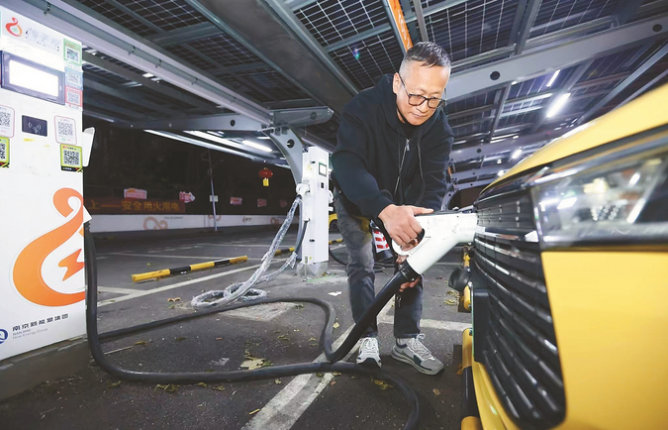 南京新能源集团总经理施浩宇给记者算了笔账:光伏车棚一年能发电10万千瓦时,虽说赶不上场站每天1万千瓦时的充电需求,但绿电不仅省了电费,还能给车辆遮阳挡雨。更划算的是“峰谷套利”,夜间电价约0.4元一度,把储能设备充满;白天电价1块多,则用储存的电能为车辆充电,运营成本因此大幅降低。