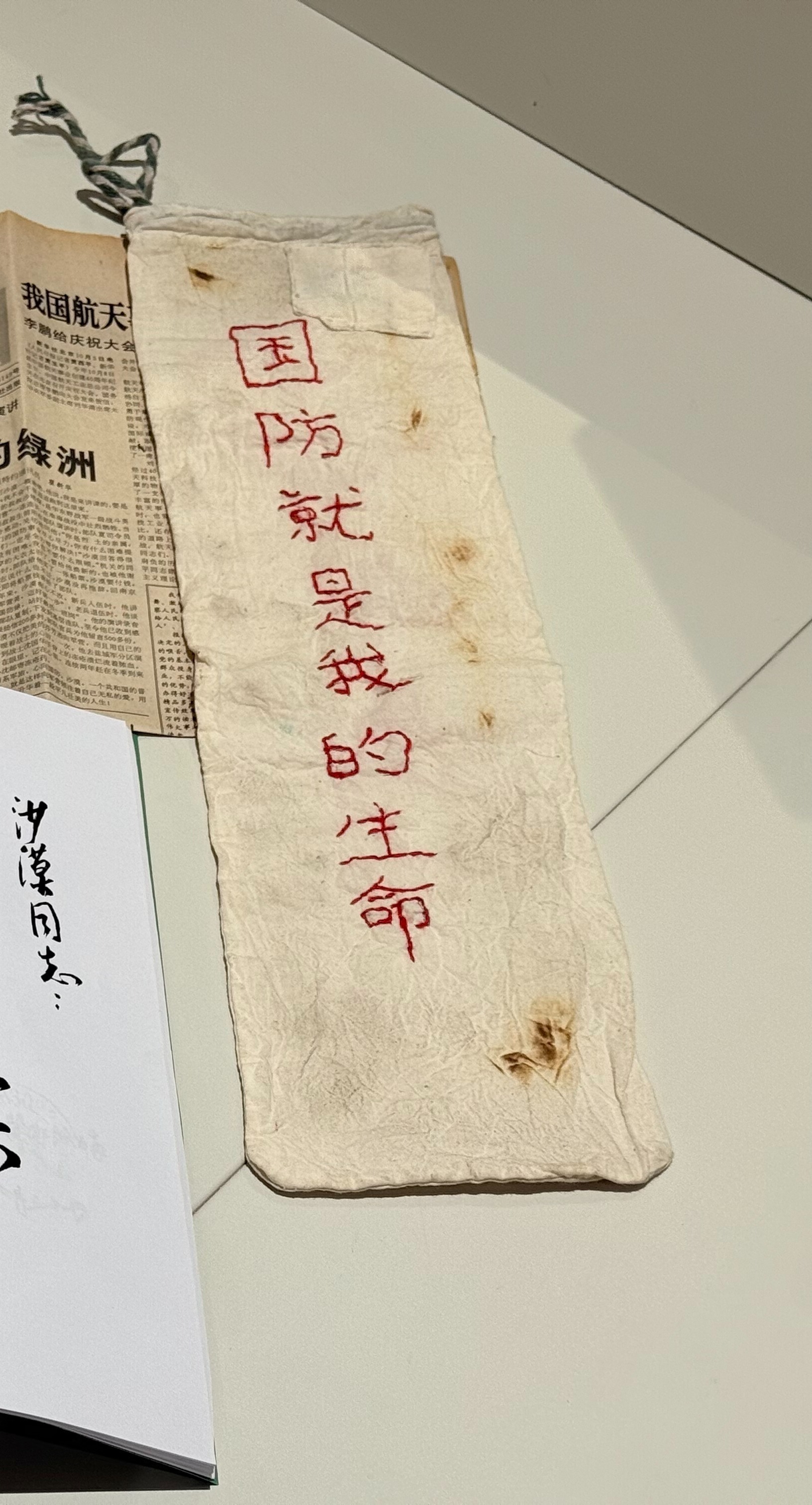 而此次成为馆藏的干粮袋,材质普通,背后的故事却不普通。这是一条绣着“国防就是我的生命”字样的干粮袋,陪着一位“不穿军装的指导员”沙漠拥军44年,是一段普通人双拥历程的真情见证。