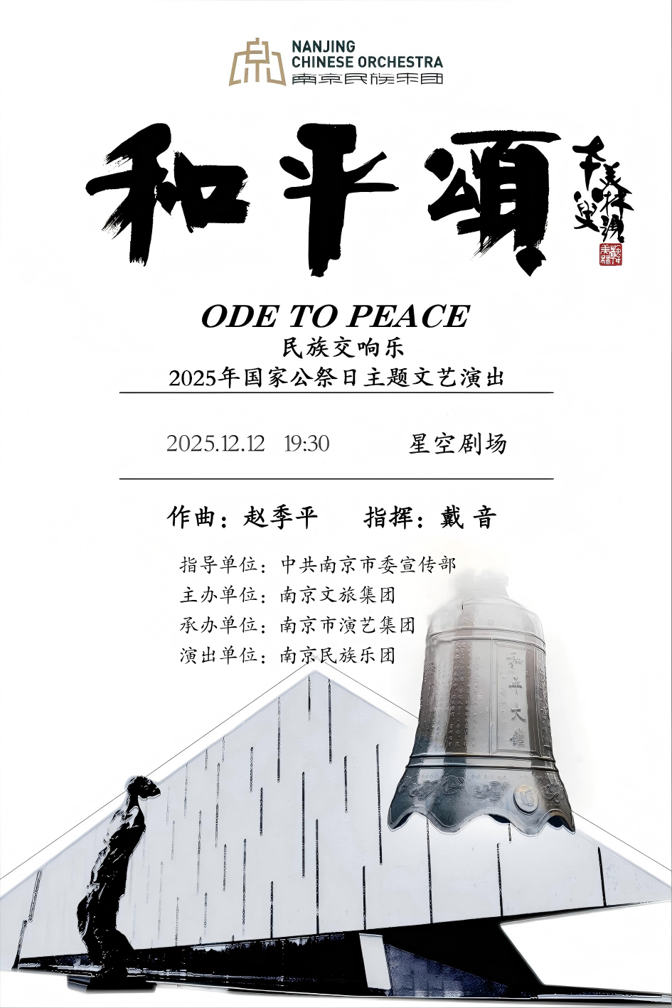 12月12日,由南京民族乐团创作的民族交响乐《和平颂》和南京市歌舞剧院创作的音乐剧《音符密码》将分别在星空剧场和雨花剧院上演。民族交响乐《和平颂》由著名作曲家赵季平创作,是我国第一部用民族交响乐形式为国家公祭日创作的大型音乐作品;音乐剧《音符密码》是今年南京市为纪念中国人民抗日战争暨世界反法西斯战争胜利80周年新创推出的主题作品,该剧讲述了抗日战争时期隐蔽战线的动人故事,传递出战争年代不灭的理想之光。