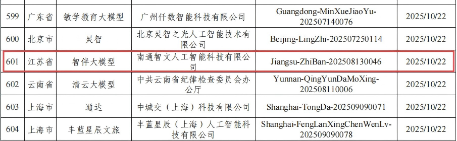 这段对话,不是发生在家人或是朋友之间。而是12月5日,记者在位于南通数字文化产业园的智文人工智能科技有限公司看到的人机交流场景。不久前,国家互联网信息办公室发布最新一批生成式人工智能服务备案名单,该公司开发的“智伴”入围,成为江苏省内少有的通过国家网信办备案的情感陪伴类AI大模型。