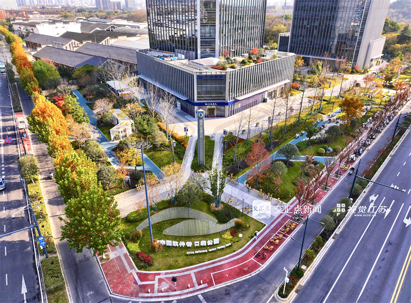12月8日,航拍南京市雨花台区数字大道旁的中国软件谷口袋公园,凉亭错落、步道蜿蜒,居民在“家门口”便能享受生态美景。新华日报·交汇点记者 赵亚玲 摄