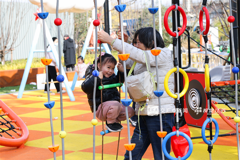 12月8日,不少市民陪小朋友来到新建成开放的南京市江宁区中心河口袋公园休闲玩耍。该公园位于宏运大道与湖山路交叉口东北角,占地面积约3800平方米。项目设计以“全龄共享”为核心理念,划分健身活动区、儿童游乐区、休闲交流区等多元功能空间,既满足青少年运动、儿童玩耍的需要,也为老年人提供静谧舒适的休憩场所。新华日报·交汇点记者 蒋文超 摄