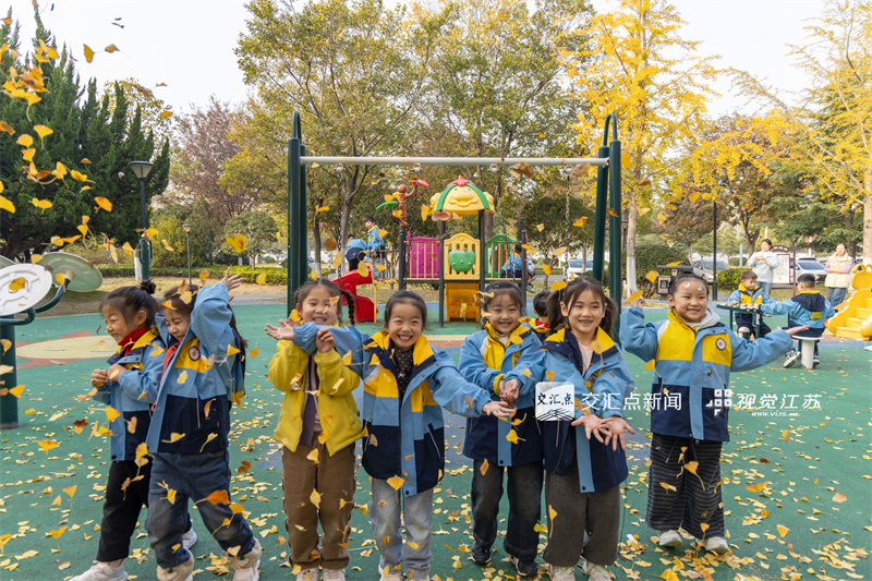 11月14日,泗洪县,江南国际幼儿园组织小朋友来到口袋公园,亲近自然,享受游戏乐趣。李佳 摄 视觉江苏网供图