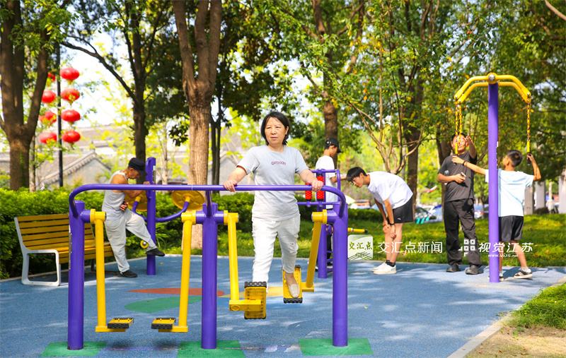 10月7日,如皋市如城街道迎新社区,市民在“口袋公园”里健身锻炼,享受运动乐趣。徐慧 摄 视觉江苏网供图