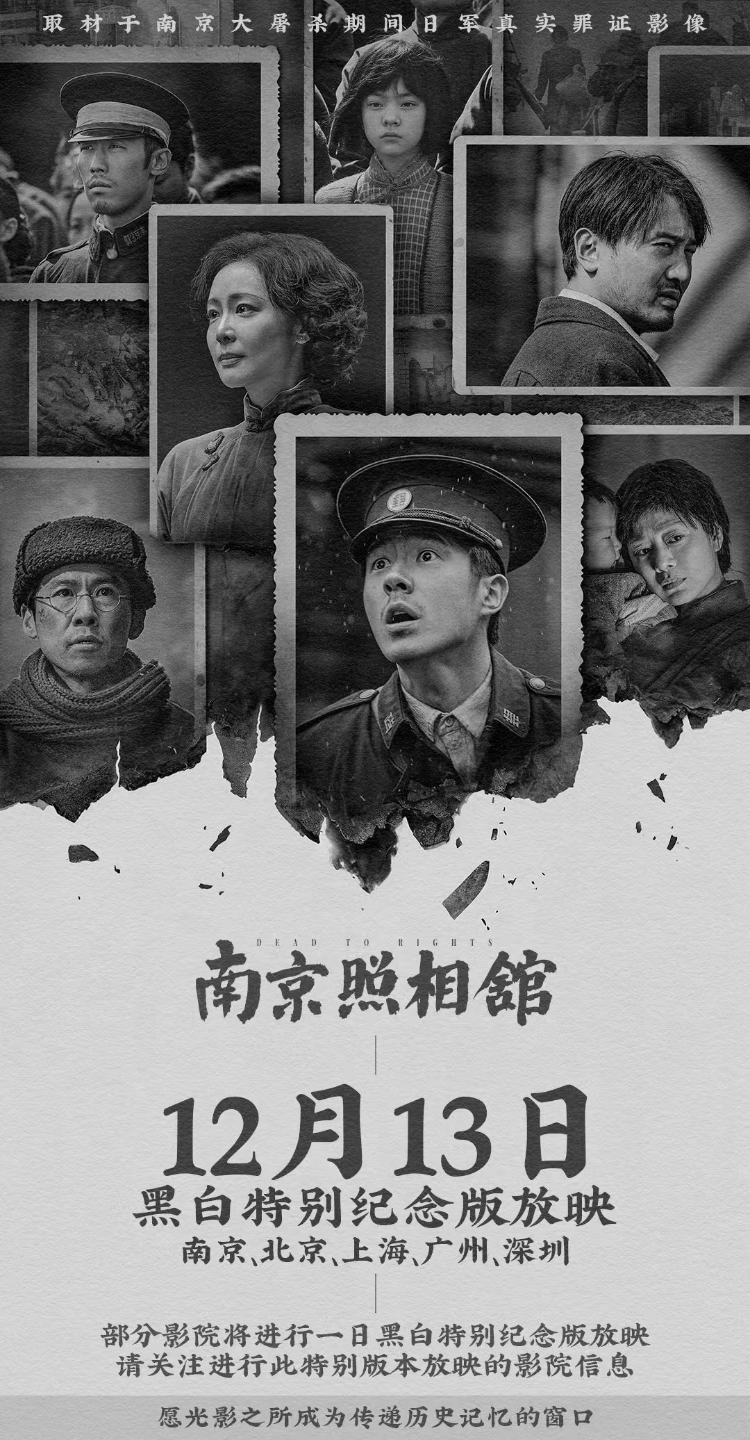 在南京大屠杀死难者国家公祭日当天,《南京照相馆》以纯粹黑白光影为桥,赴跨越88年的铭记之约,用肃穆观影告慰先烈、守护历史记忆。
