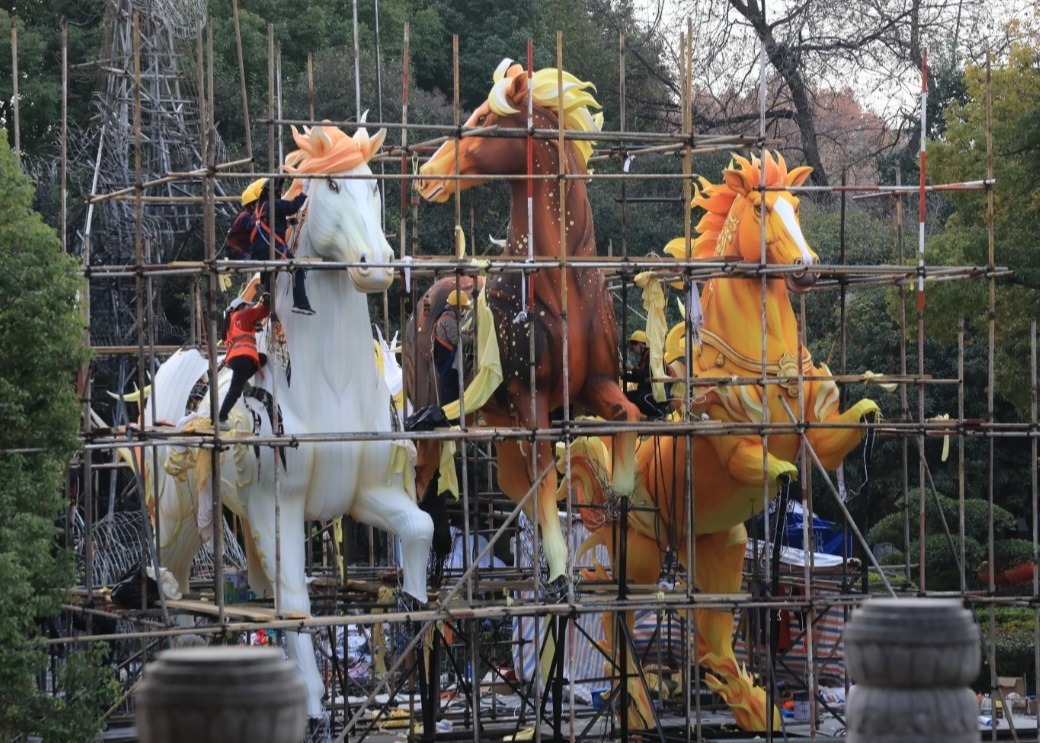 12月10日,记者探访了一处秦淮灯会灯组制作点看到,秦淮花灯群正在紧锣密鼓地制作当中,各个流程正有条不紊地进行着。如“万马奔腾”灯组,通过现代光影技术,展现“天马行空”的浪漫想象。