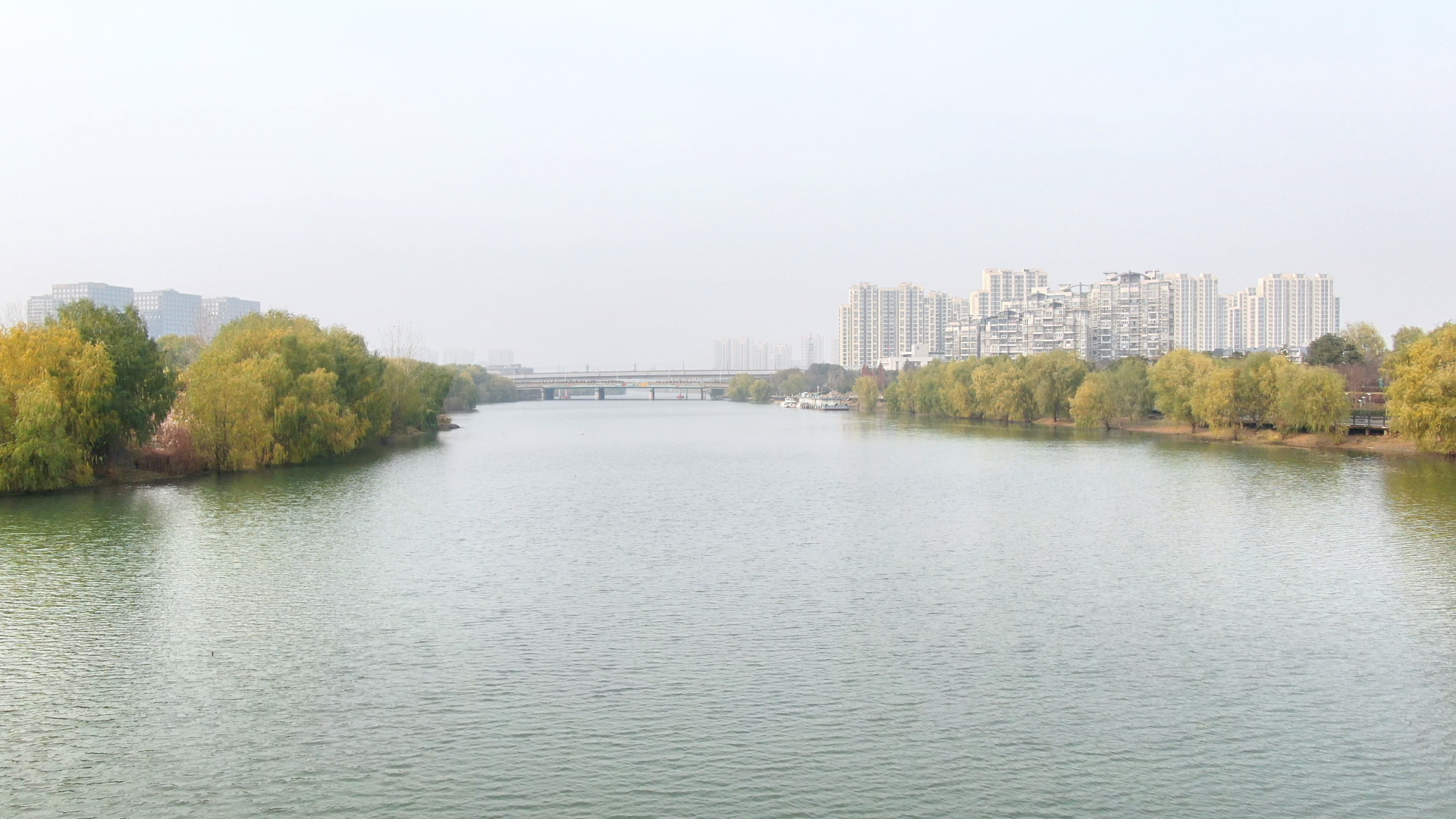 视线转向城区,位于江宁的秦淮河畔,三三两两的市民正悠闲活动。岸边步道、球场等设施完备,即便工作日也人流不断,生气盎然。