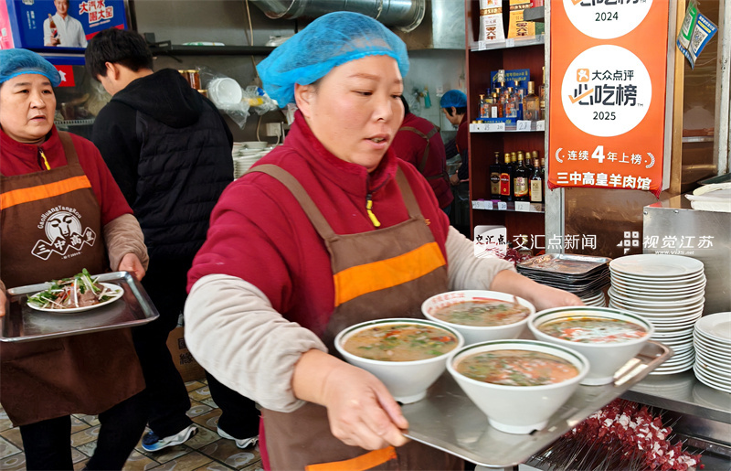 12月18日,冬至将至,徐州市一家羊肉馆的羊肉菜品吸引食客前来品尝。安炳力 摄 视觉江苏网供图