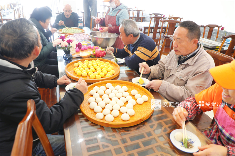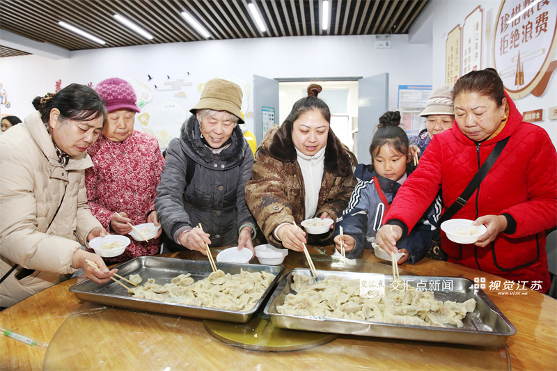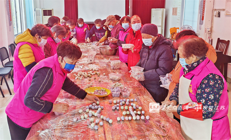 12月18日,南通市崇川区和平桥街道起凤社区新时代文明实践站联合嬷嬷服务队,开展“巧手搓汤圆 欢聚迎冬至”活动,志愿者与老人一起制作汤圆,迎接冬至。李斌 谢添 摄 视觉江苏网供图