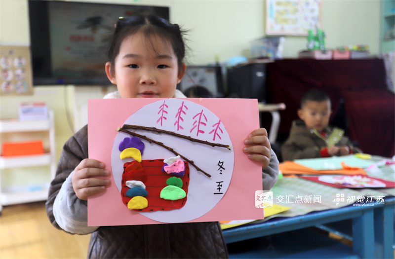 12月16日,苏州市姑苏区葑门中心幼儿园的孩子在老师指导下,用彩泥、卡纸等制作“冬至图”,体验传统民俗,迎接即将到来的冬至节气。王建康 摄 视觉江苏网供图