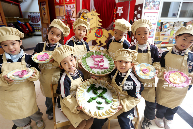 12月18日,连云港市核电钟声幼儿园的小朋友在老师指导下,包彩色饺子、剪纸等,迎接冬至节气的到来。王春 鲍亚男 摄 视觉江苏网供图