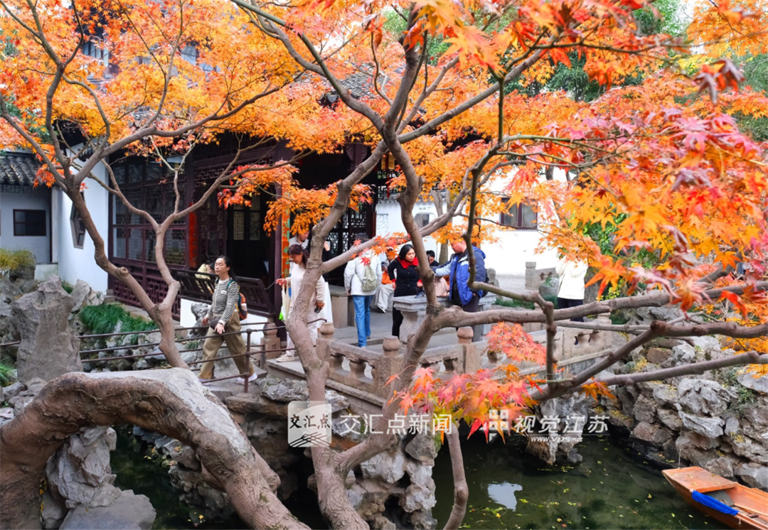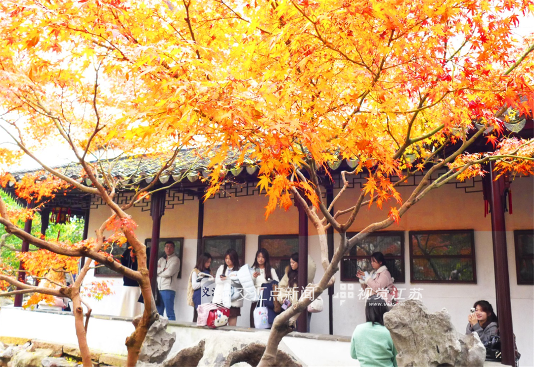 (特约摄影 王建中 12:52摄 15:18上线)12月20日,冬至将至,苏州古典园林怡园一棵因暖冬较往年晚红且造型独特的鸡爪槭,呈现满树红黄相间的别样“枫”景,吸引市民游客纷至沓来,赏景游玩,打卡拍照。