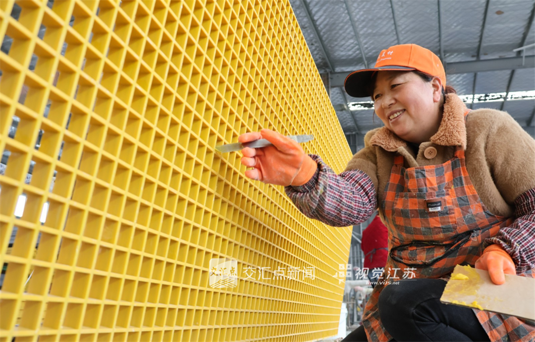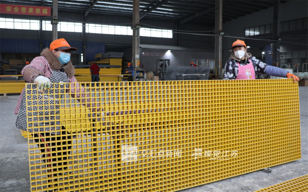 (特约摄影 王华 10:43摄 12:22上线)12月20日,连云港市卓众复合材料有限公司员工正在赶制出口欧美市场的玻璃钢模塑格栅产品。据了解,该公司产品适用于石油、电力、海洋勘探等行业工作平台,凭借优良品质远销英国、瑞士、德国等欧美国家,年销售收入达600余万美元。