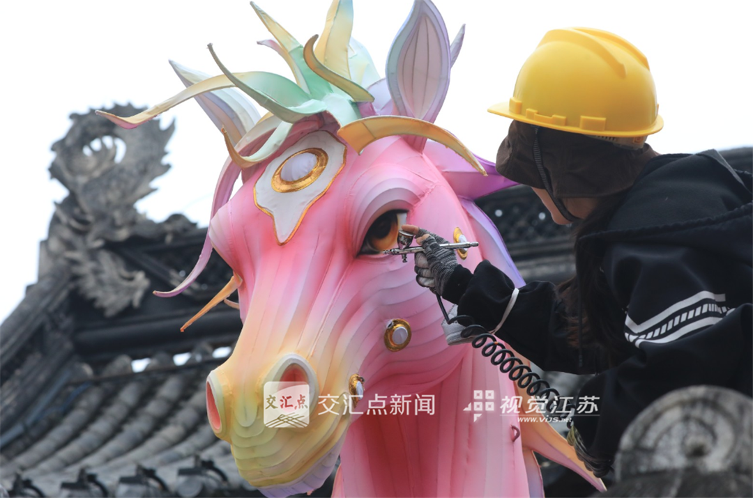 (特约摄影 徐福庚 摄 17:35上线)12月20日,南京夫子庙大成殿的粉马灯,作为2026年灯会的亮点,目前正处于上色的关键阶段。匠人们通过精细的色彩搭配和光影设计,力求提升灯组的艺术感染力,用细腻的笔触和丰富的色彩,让马身在光影中更显灵动,为灯会增添了一抹亮色。
