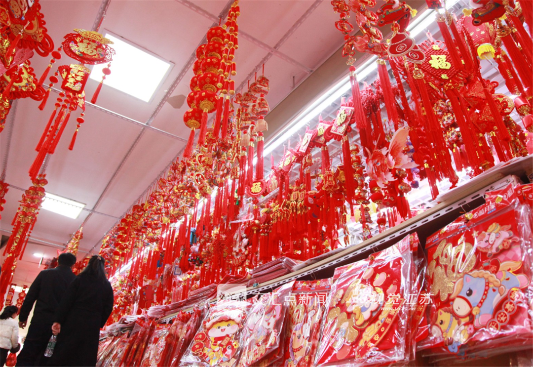 (特约摄影 刘建华 11:59摄 20:26上线)12月20日,随着马年的临近,南京玉桥市场新年饰品供销两旺。