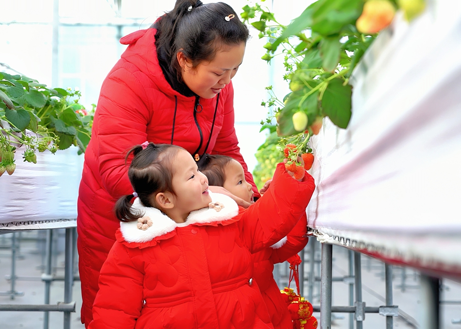 草莓园里,宁玉、红颜等品种已陆续开花挂果。“不用多久,就会有很多带娃家庭来采摘草莓了。”刘程媛说,“今年是我种草莓的第8个年头,每年我们草莓园都是盐城市休闲采摘第一名。”