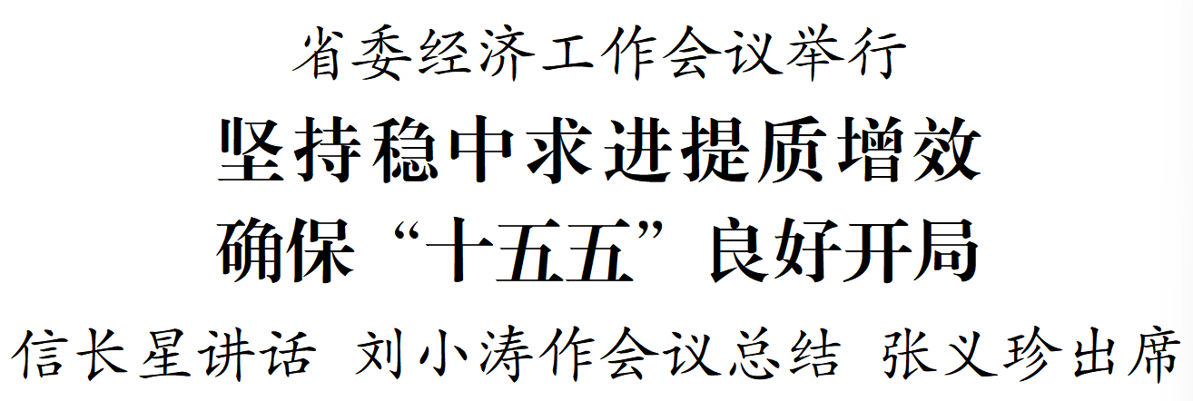 交汇点讯 12月22日,省委经济工作会议在南京举行。会议深入学习贯彻中央经济工作会议精神,总结今年经济工作,分析当前经济形势,部署明年经济工作。省委书记信长星讲话,省长刘小涛作会议总结,省政协主席张义珍出席。