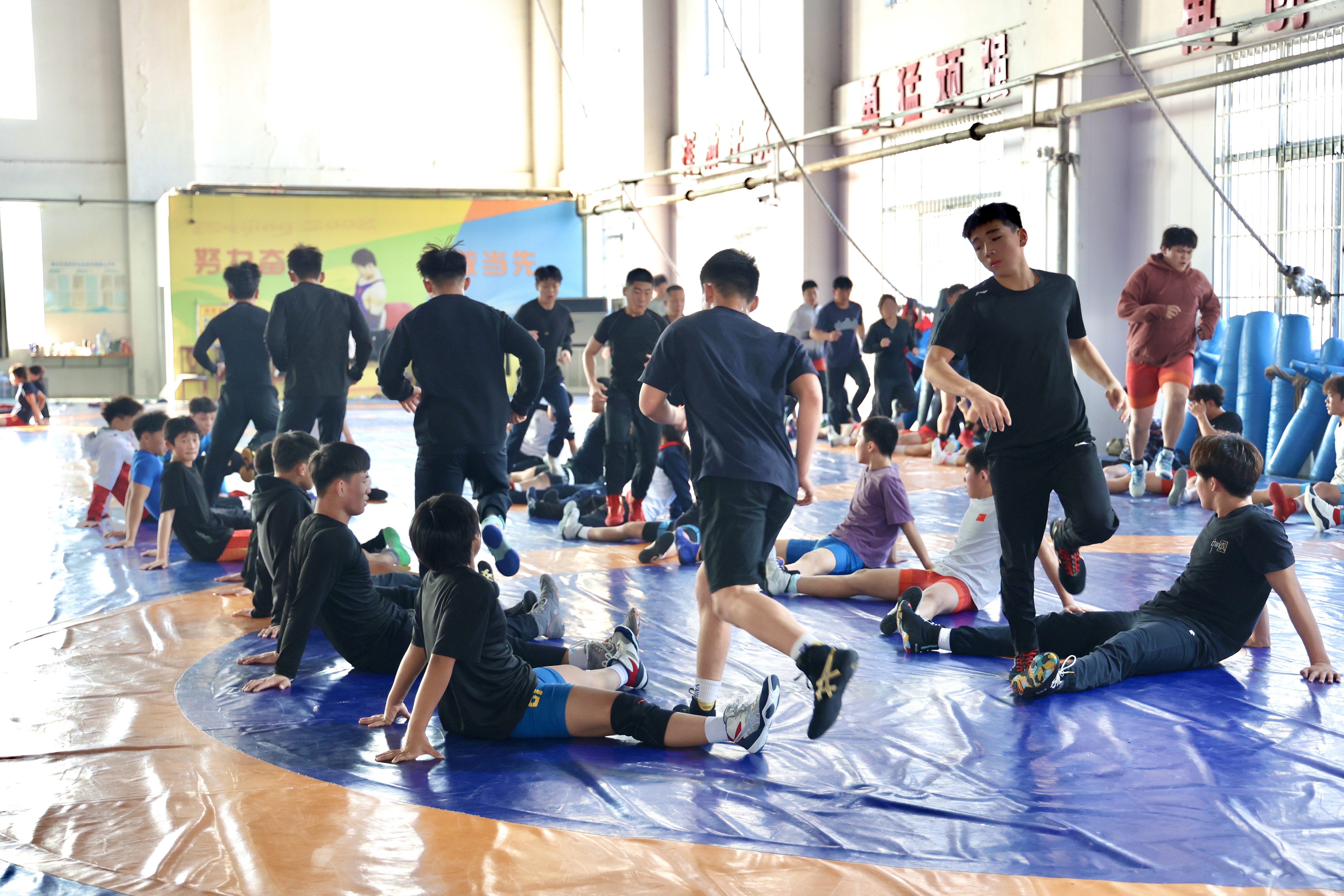 12月18日,宿迁市体育运动学校的摔跤训练馆如往常般热火朝天。队员们匍匐前进、跳山羊、钻裆、高抬腿奔跑,紧接着是连续三个小时的技战术训练。尽管训练艰苦,一张张稚嫩的面庞却写满坚毅,孩子们都渴望着有朝一日像前辈们一样站上光荣的赛场。