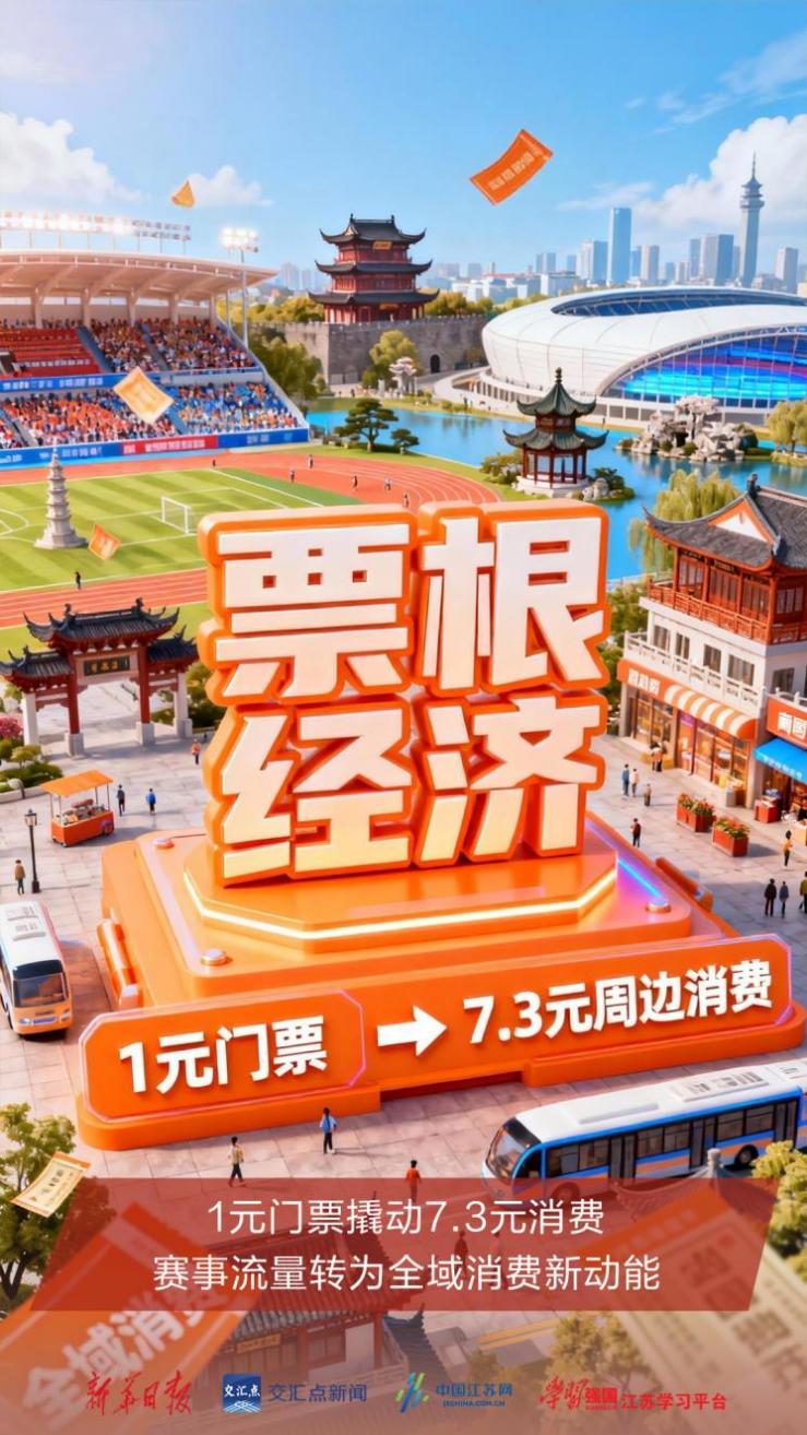 以“苏超”球票为引领,江苏创新解锁“票根+消费”模式,凭赛事、演出门票可享景区、住宿、餐饮、购物等多重优惠。“苏超”赛事期间,江苏推出“跟着苏超游江苏”跨区域主题线路50多条、特色活动2800余项、惠民措施500余项,形成了文旅体商融合创新实践,748个商圈街区举办“第二现场+美食”活动。数据显示,一张小小的票根带动江苏全域多场景消费超380亿元,95.9%的“苏超”观众都产生了门票外的消费,实现“1元门票撬动7.3元周边消费”的杠杆效应。这种“赛事引流、文旅留客、消费兑现”的模式成为提振内需新引擎。