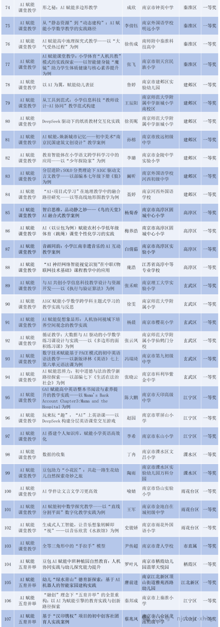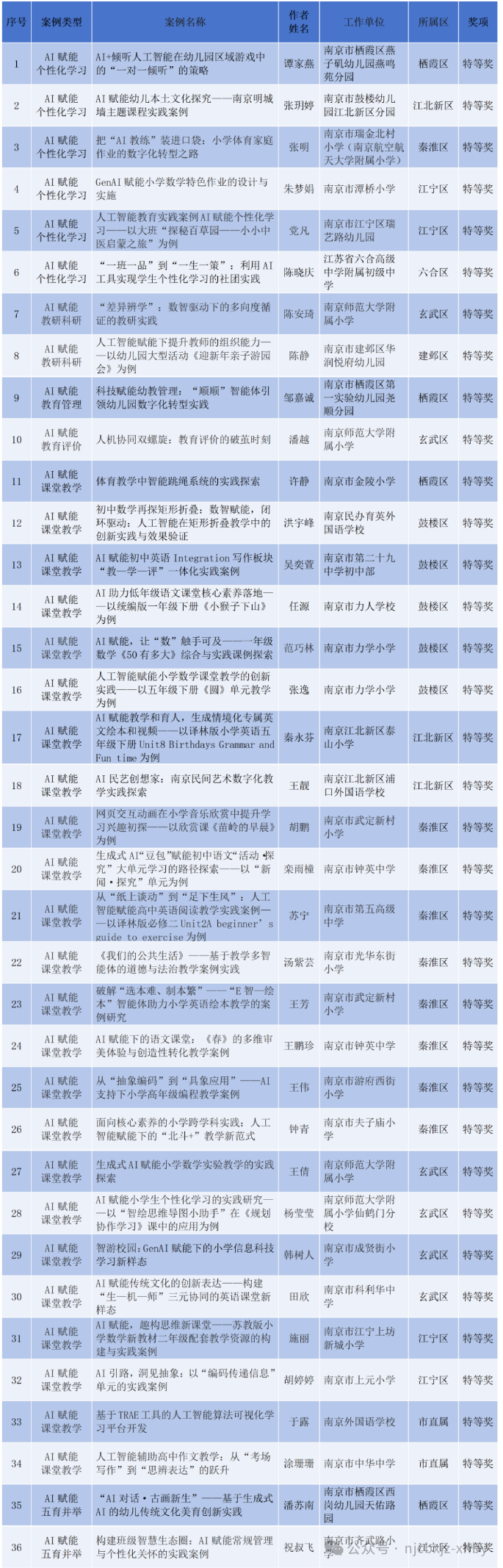 据了解,此次案例征集聚焦AI赋能课堂教学、个性化学习、教育管理、教育评价、教研科研、五育并举等六大核心领域,总结梳理南京地区中小学在人工智能教育的创新实践与成功经验,目的是形成可复制、可推广的教育数字化转型样本。