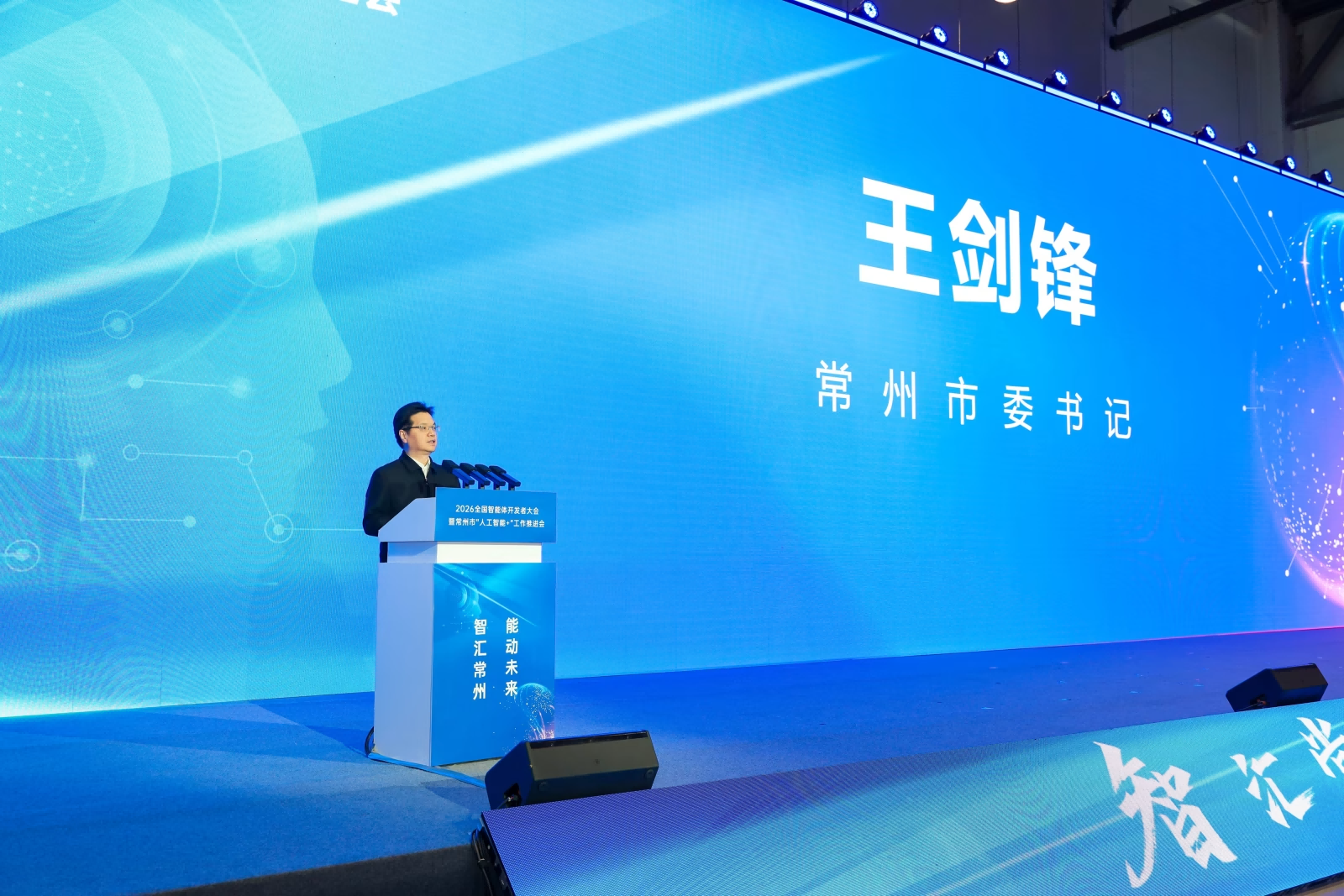 王剑锋在致辞中表示,在扎实的实体经济根基之上,常州积极拥抱人工智能浪潮,一体推进数据、算力、模型、场景、生态融合发展,加快打造全国“智能体+场景应用”示范城市。近年来,常州持续强化企业创新主体地位,加快提升创新平台能级,全社会研发经费占比连续五年全省第三,高新技术产业产值占比全省第一。常州正全力推动人工智能与实体经济“双向奔赴”,让每一个智能体解决方案,都能在这里找到落地的场景和创造价值的空间。