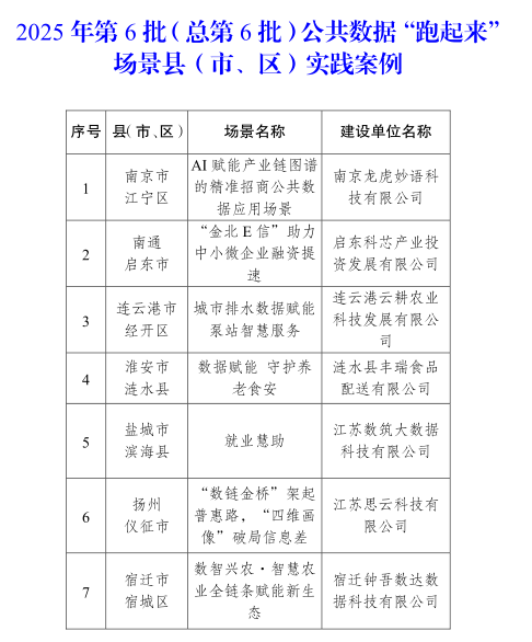 交汇点讯 江苏省数据局近日确定7个场景纳入2025年第6批(总第6批)公共数据“跑起来”县(市、区)实践案例。