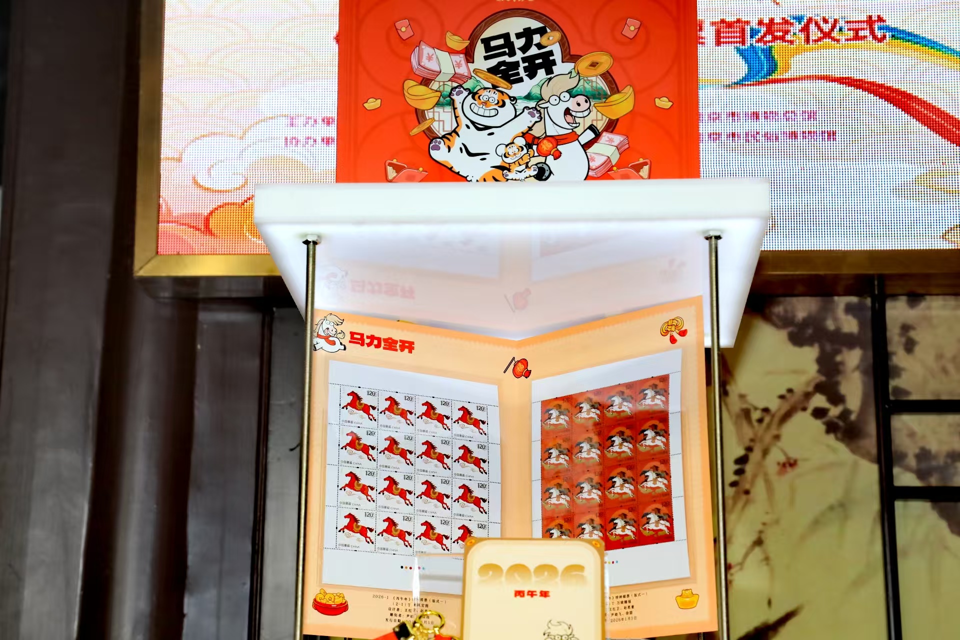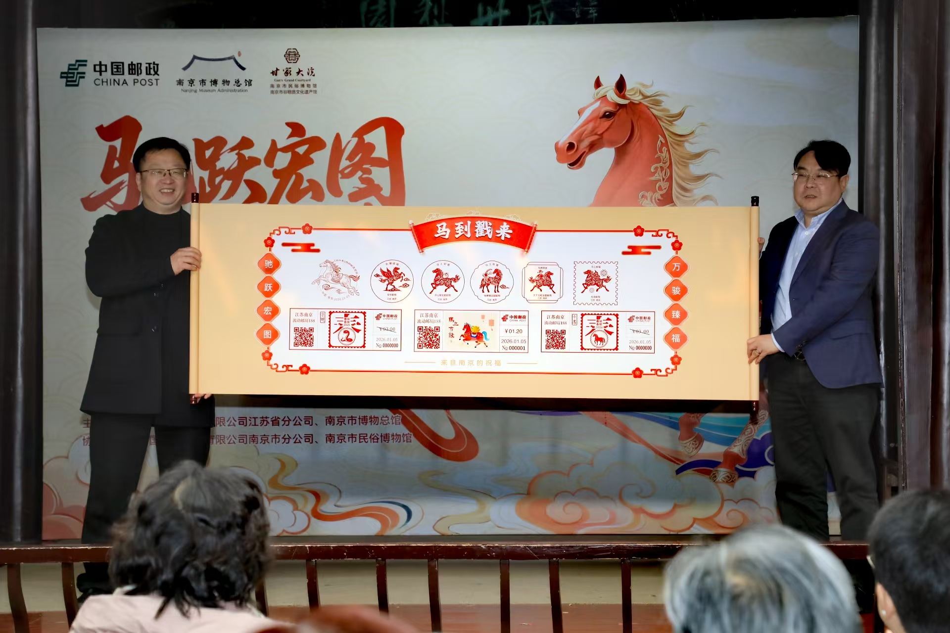 交汇点讯 1月5日,《丙午年》生肖邮票如约而至。在南京市民俗博物馆,举办了邮票首发、白局表演、马年民俗文化专家分享等一系列丰富活动。“驰骋千年·马韵中华”中国马主题邮票展也于当日在南京生肖邮局启动,通过方寸艺术呈现马在中华文化中的精神象征。