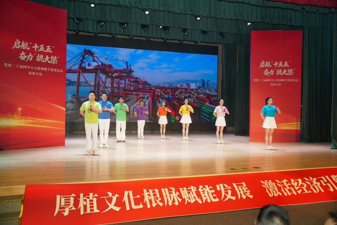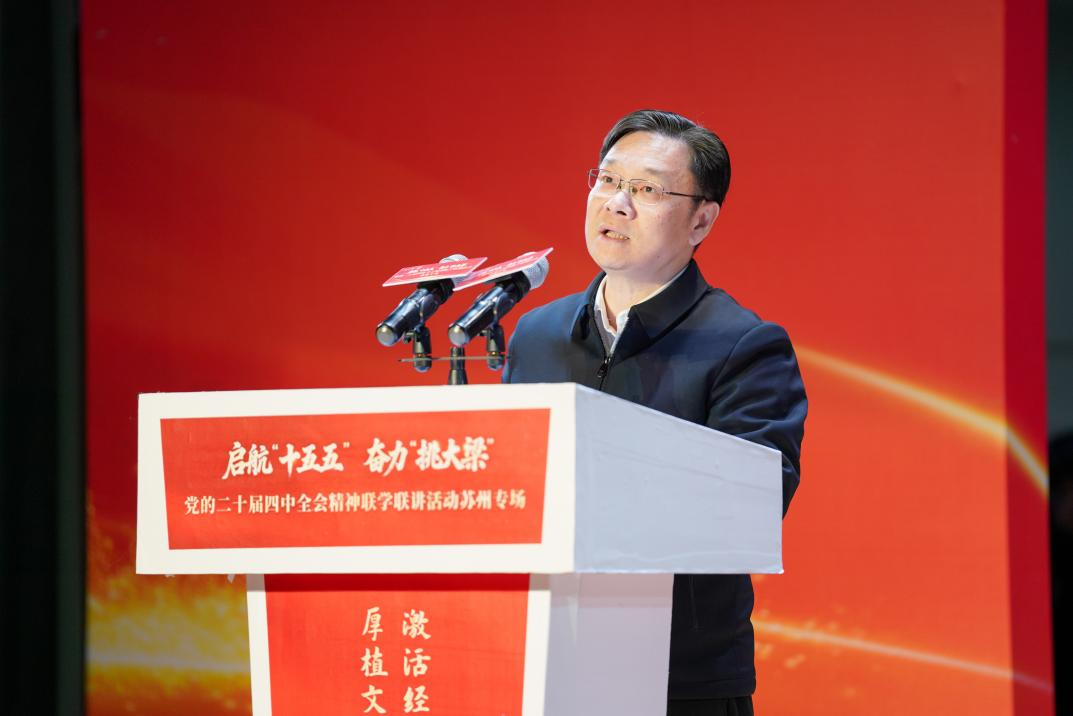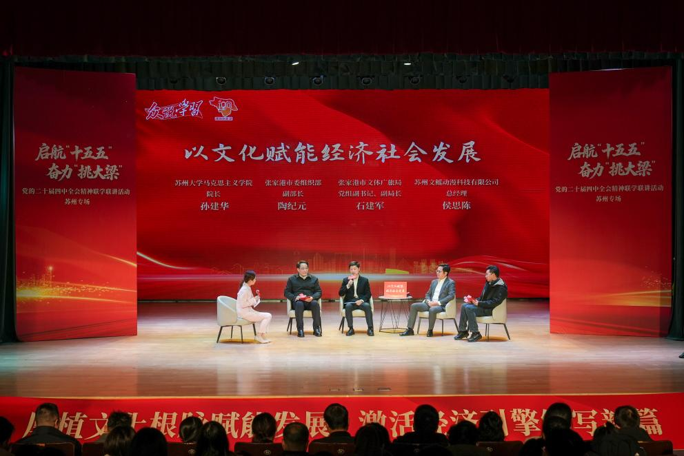 2026年1月5日,“启航‘十五五’ 奋力‘挑大梁’”党的二十届四中全会精神联学联讲活动苏州专场在张家港举行。联学联讲活动通过江苏理论宣讲共建共享平台及全省64家县级融媒体中心直播,省内外在线收看人次达435.5万。