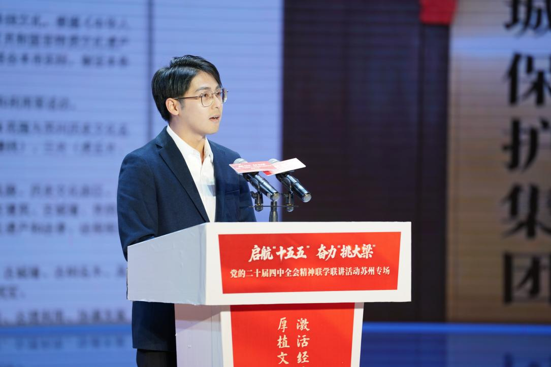 第一篇章“寻光·深学细悟明方向”,邀请省委宣讲团成员、南京大学商学院教授、中国(江苏)自由贸易试验区研究院院长韩剑围绕《全面落实中央经济工作会议精神 奋力夺取“十五五”发展开门红》作专题宣讲,张家港市社科联主席陈刚宣讲了书写好人文经济学县域研究与实践的“张家港答卷”,苏州市新时代基层理论宣讲名师、姑苏区金阊街道团工委书记金王栋宣讲姑苏区32号街坊保护更新项目案例。