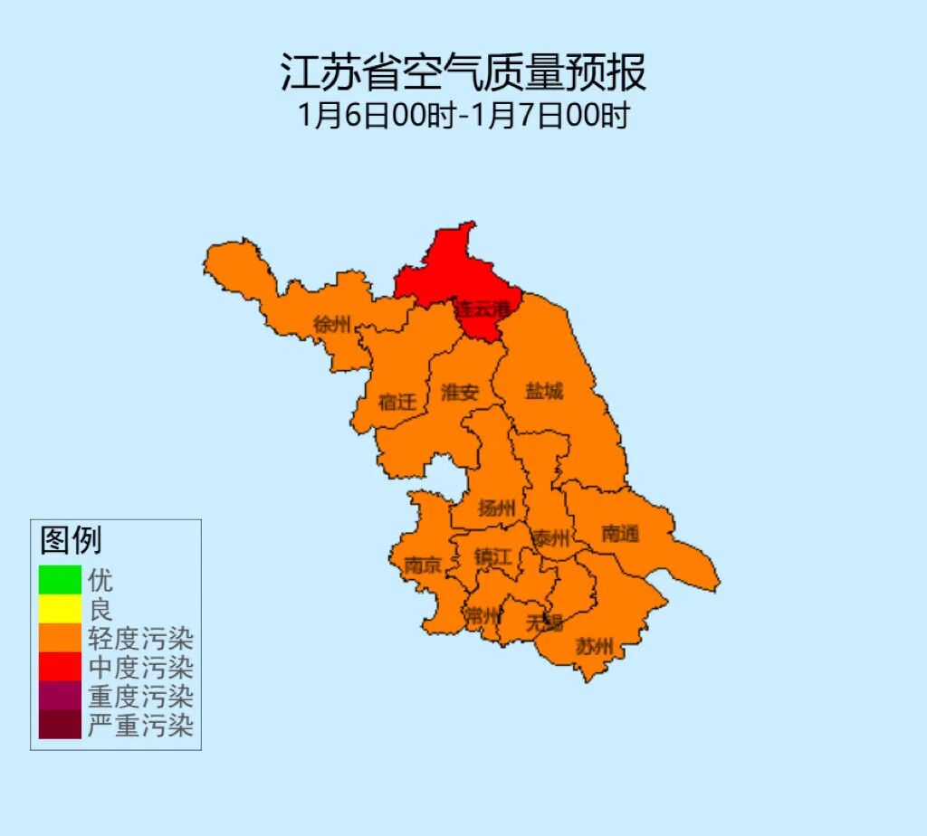 连云港自昨日16时起也将重污染天气黄色预警升级至橙色预警,执行《江苏省重污染天气应急预案》Ⅱ级应急响应措施。