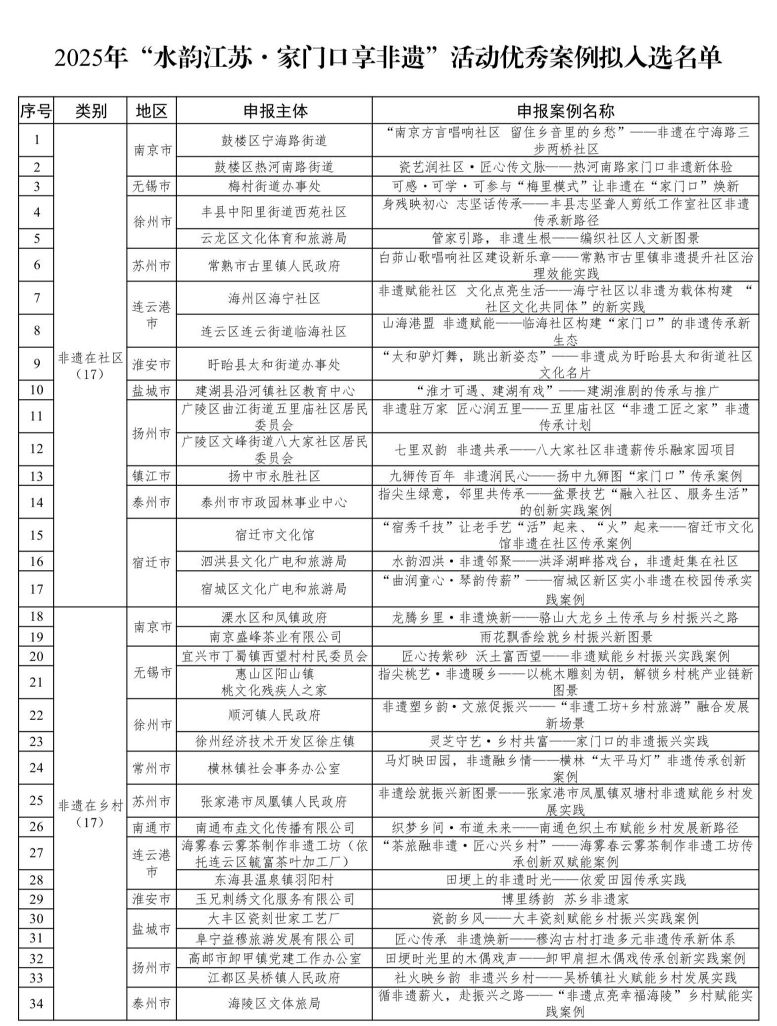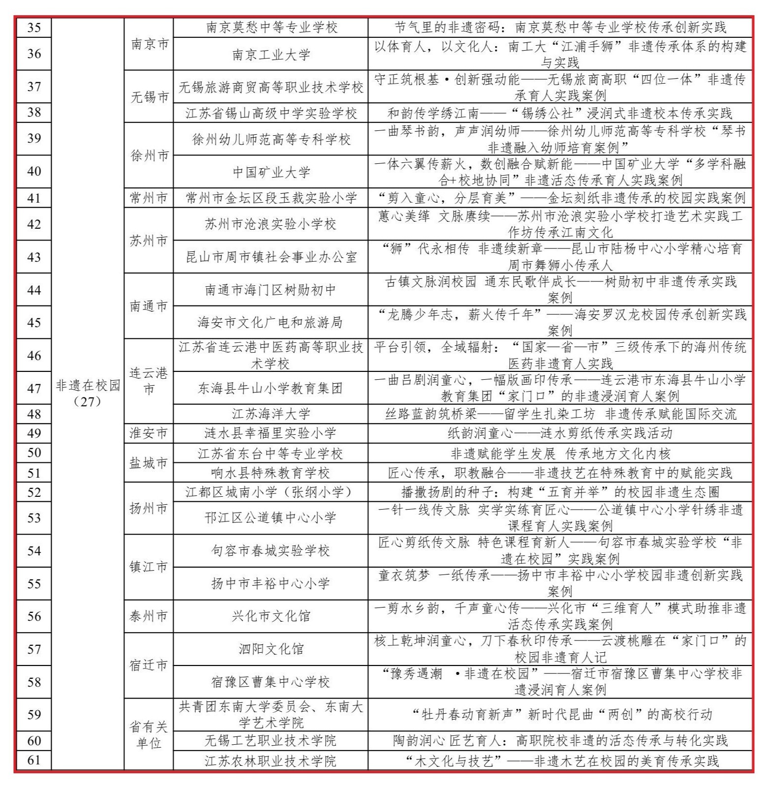 交汇点讯 近日,2025年“水韵江苏・家门口享非遗”活动优秀案例公布,全省共有“非遗在社区”“非遗在乡村”“非遗在校园”三大类61个案例入选。记者注意到,其中“非遗在校园”优秀案例27个。