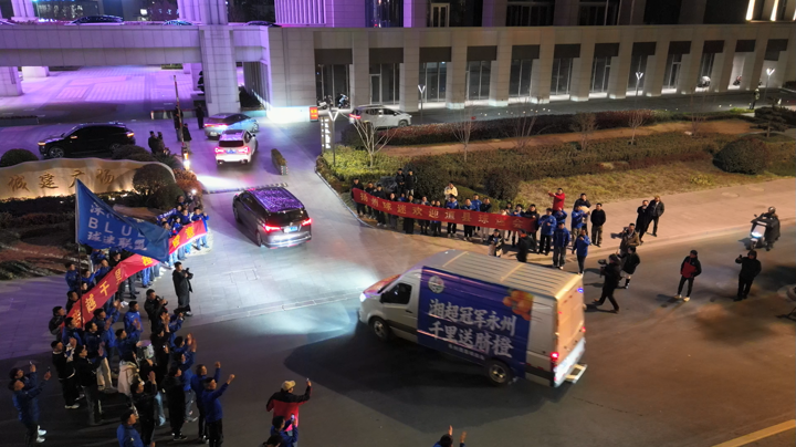 这份情谊始于2025年12月的“湘超”联赛。一支平均年龄不足20岁、从条件简陋的“告花子球场”走出的永州“学生军”,凭借顽强拼搏的“永冲锋”精神,一路逆袭夺冠。他们的励志故事感动了千里之外的江苏球迷,江苏网友自发在永州点亮一幅幅祝贺广告牌,为这座冠军之城隔空喝彩。