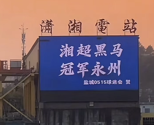 永州队夺冠后,江苏各大城市率先掀起为永州打call的热潮。苏州、南京球迷率先在永州竖起祝贺巨幅广告牌,盐城0515球迷会紧随其后,在广场、潇湘电站等公共场所亮出“湘超黑马 冠军永州 盐城0515球迷会贺”的醒目标语;无锡文旅通过投放大屏广告的方式,向这座冠军之城送上真挚祝福;永州网友也以诚意回应,在沪蓉高速常州薛家收费站附近竖起“湘超冠军永州感谢常宝”“双向奔赴 情义无价”的巨幅致谢广告牌,让湘苏两地情谊迅速升温。