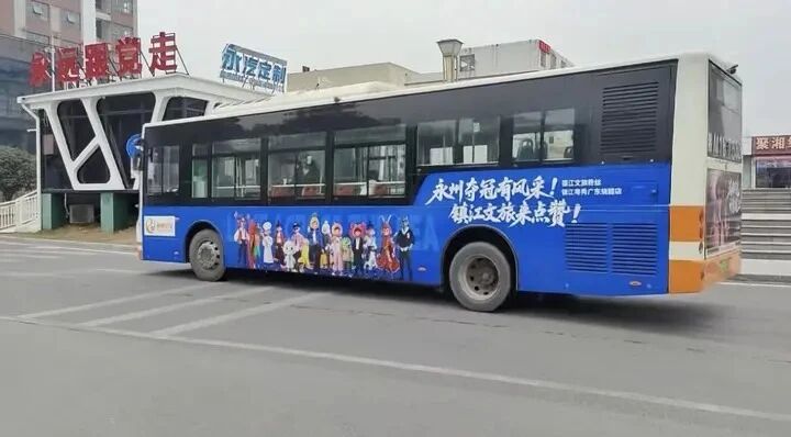 与此同时,镇江文旅的忠实粉丝“耶果”也以独特方式加入这场互动。受江苏多地赴永州投放广告牌话题的启发,她将镇江文旅原创动画《漂洋过海来看你》的经典画面与永州985路公交车身结合,印上“永州夺冠有风采!镇江文旅来点赞!”的醒目标语,让这辆公交车成为串联两座城市情谊的流动风景线,传递着两岸一家亲的温暖愿景。从对接相关事宜到最终落地,整个过程仅用两天时间便顺利完成,彰显了民间自发的城际友好热情。