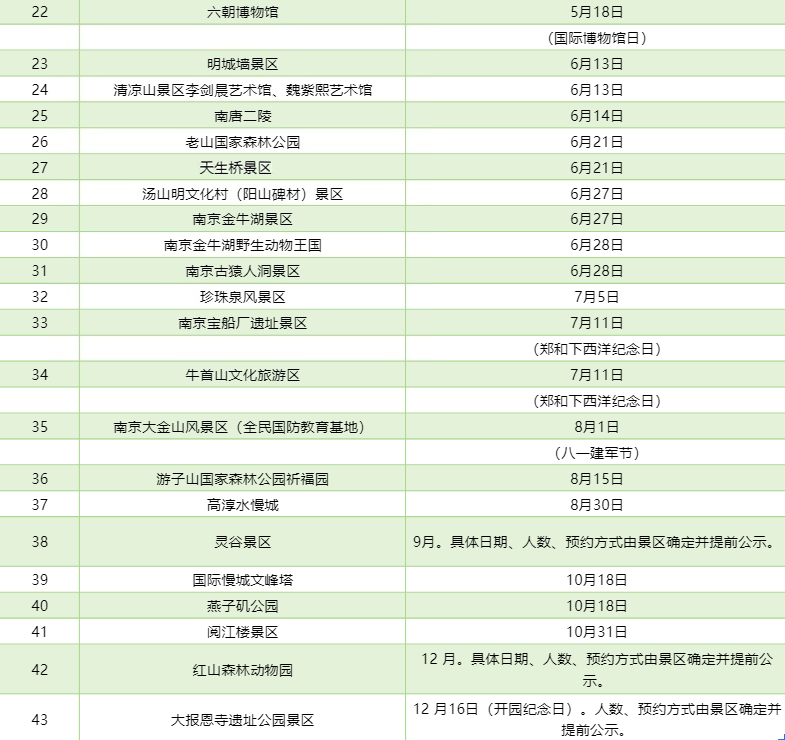 2026年精彩继续!南京市公布2026年度实行政府指导价管理的景区免费开放日,据悉,今年共有43个旅游参观点参与免费开放日活动,开放时段贯穿全年,其中“518国际博物馆日”前后参与的景区最多。