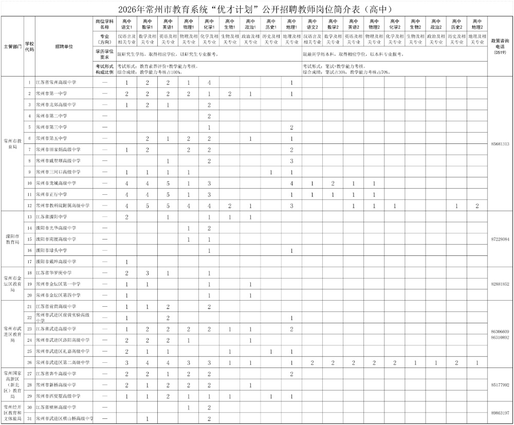 报考人员可通过下列网站查询招聘岗位及具体条件等有关信息:常州市人力资源和社会保障局(rsj.changzhou.gov.cn);常州市教育局(jyj.changzhou.gov.cn)。