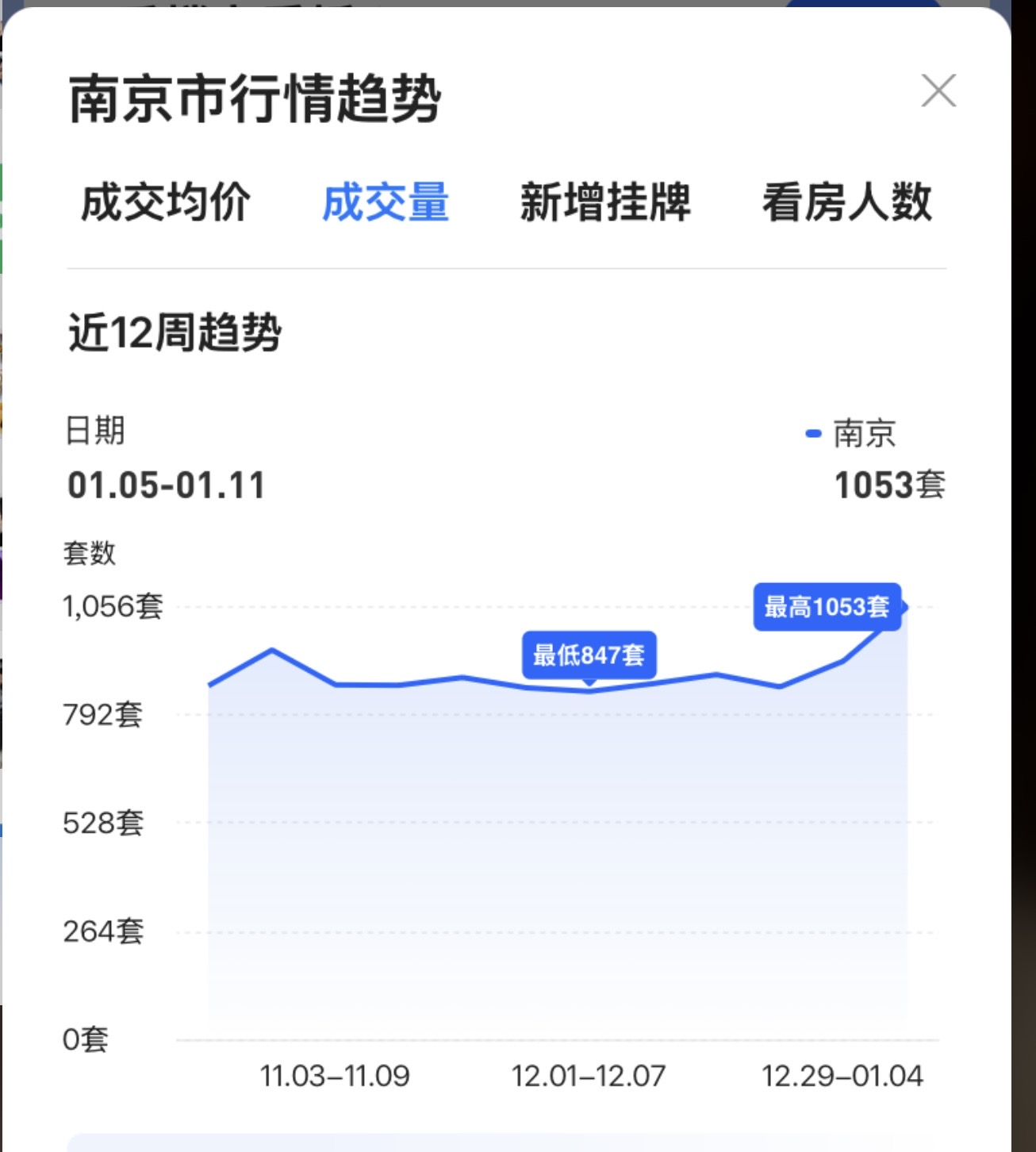 链家数据显示,1月5日—1月11日,南京二手房的看房人数环比上涨13%至14%左右,回升力度十分明显。