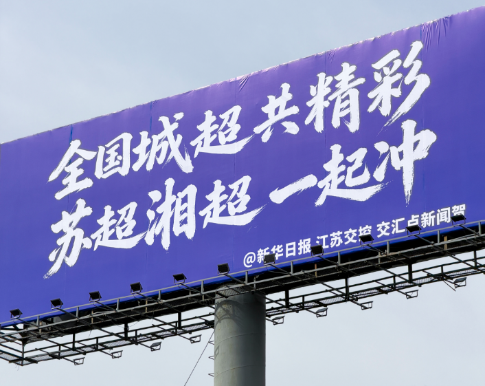 紧接着,南京、泰州、无锡、镇江、盐城等江苏多地网友也纷纷加入,慷慨“包”下永州中心城区及各县市区的多个户外广告牌与电子屏,以永州队标志性的蓝色为底色,用热情洋溢的话语为冠军喝彩。这些广告牌不仅迅速刷屏永州街头,更成为江苏球迷展示创意与热情的窗口。