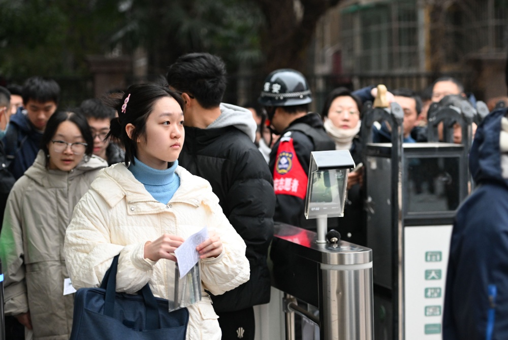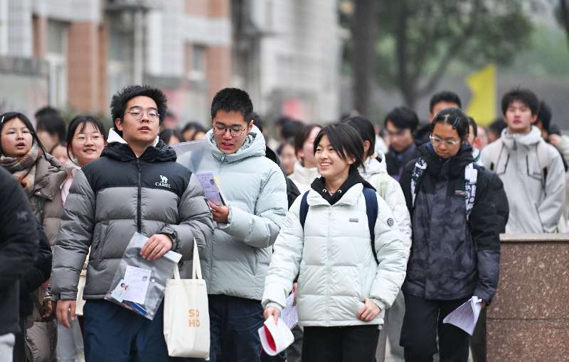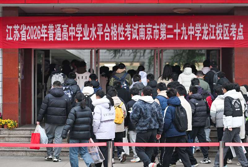 1月17日,为期三天的江苏省普通高中学业水平合格性考试(笔试)开考。全省共设516个考点、28802个考场。图为南京第二十九中学考点,考生有序进入考场。