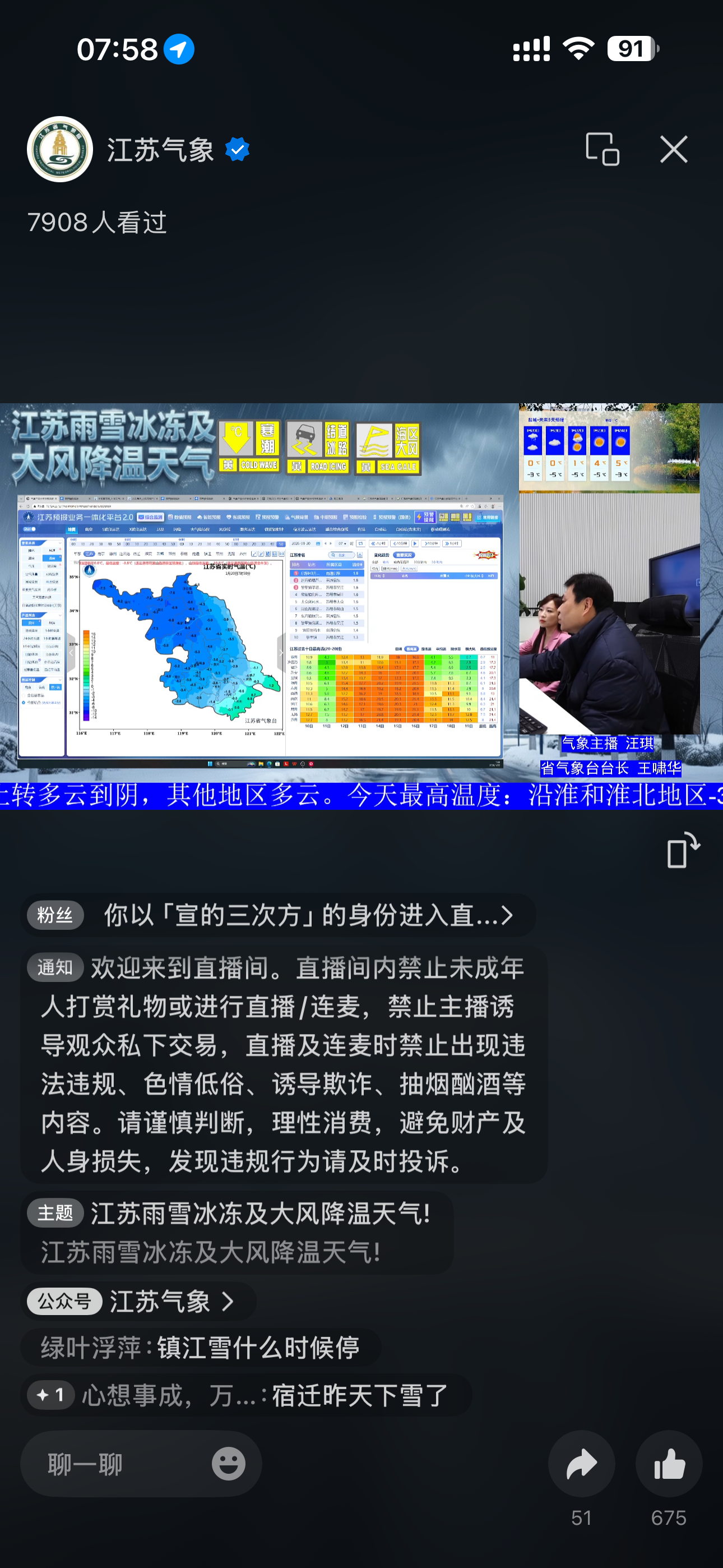 受寒潮影响,江苏正遭遇雨雪冰冻及大风降温天气,降温剧烈且降水相态复杂,对交通出行、生产生活等带来潜在影响。为让大家第一时间掌握权威天气动态,江苏省气象服务中心特在“江苏气象”官方微博、微信公众号开设专属直播(点击观看:直播|关注江苏雨雪冰冻及大风降温天气)。气象专家将实时跟进天气演变,解读降雪、冰冻、大风的最新实况与发展趋势,拆解降温幅度、雨雪范围等关键信息,提供针对性防范建议。