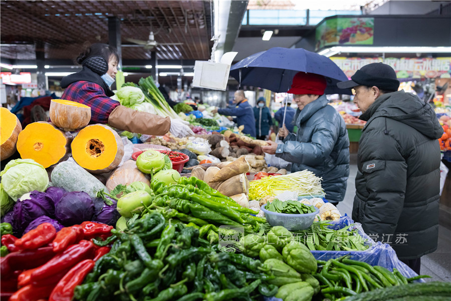受寒潮影响,南京气温骤降。相关部门积极应对多措并举,保障市民“菜篮子”供给。图为1月19日,在南京市雨花台区一家菜市场内,市民在选购各种新鲜蔬菜。新华日报·交汇点记者 蒋文超 摄