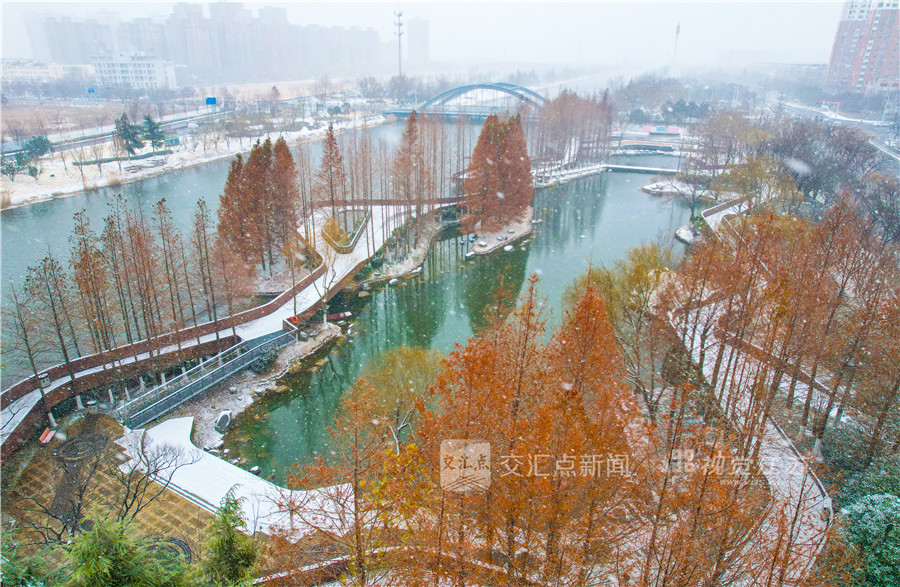 1月19日,宿迁市宿城区鸣凤漙公园银装素裹。朱峰 摄 视觉江苏网供图