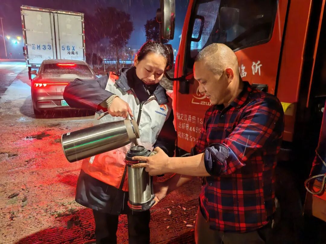 此外,江苏交控各单位均在重点区域铺设防滑垫、设置警示标识,消除结冰安全隐患,所属各服务区常态化设立“暖心服务站”,加密充电桩巡检和除冰频次,志愿者提供路线指引与路况咨询。宁宿徐公司设18处“暖冬驿站”,新增156个临时休息位,备有姜茶、防寒衣物,204把充电枪全时可用,110名志愿者流动提供应急服务。