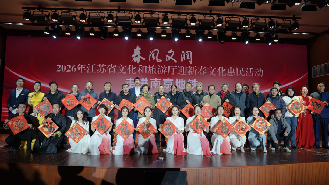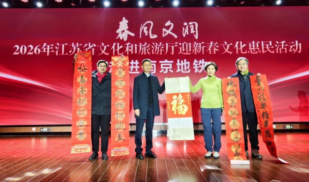 1月20日,南京迎来了今冬的首场瑞雪,南京地铁马群实训基地安全教育中心内,却是暖流涌动、墨香萦绕。当天下午,江苏省文化和旅游厅2026首场新春基层慰问活动在南京地铁公司拉开帷幕。江苏省国画院、江苏省美术馆、江苏省文化馆、江苏省文化艺术研究院、江苏省书法院、南京地铁等单位相关负责同志和书画家们将一场充满笔墨馨香与艺术温度的“文化迎新会”,直接送到了南京地铁一线职工身边。
