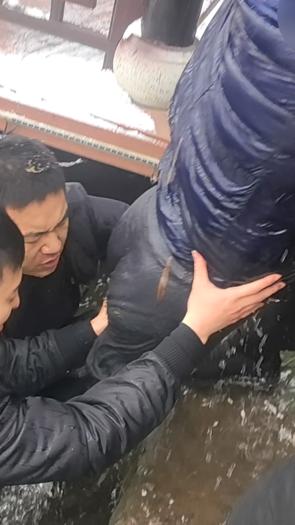多一分等待,老人就多一分危险!“没办法了,脱衣服!”民警陈玉潇斩钉截铁地说道。他迅速脱下警服,毫不犹豫跳入冰冷刺骨的湖水中开展救援。见习民警闫松岳见状,二话不说紧随其后,两人合力在水中帮助老人脱困。由于水底石头凹凸不平,救助过程中两人几次险些摔倒。