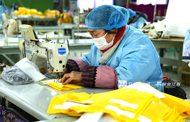 (特约摄影 刘彬 8:19摄 9:30上线)1月22日,淮安市洪泽区东双沟镇一家旅游箱包企业车间一派忙碌景象,工人赶制、检验、包装啤酒礼品袋出口订单,力争实现“开门红”。