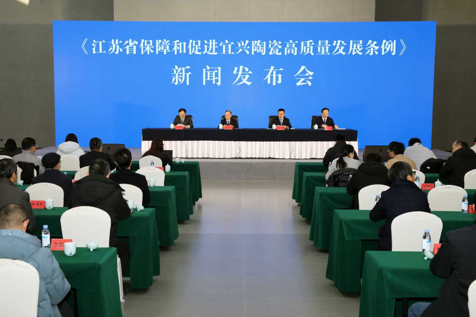 1月20日,省十四届人大常委会第二十次会议审议通过《江苏省保障和促进宜兴陶瓷高质量发展条例》,这是罕见的为“一县一业”的省级立法。1月21日,条例新闻发布在宜兴市丁蜀陶瓷二厂召开,介绍了立法背后考量和制度设计特点。