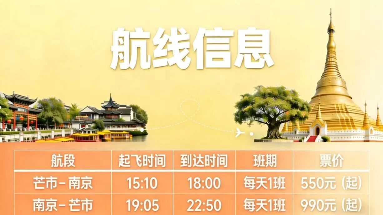 交汇点讯 1月22日,新华日报·交汇点记者从无锡市交通产业集团有限公司获悉,2月1日,苏南瑞丽航空将开通“南京⇌芒市”航线,这条跨越近3000公里的空中纽带,串联起长三角腹地与滇西边陲风情,助力春运温暖出行。